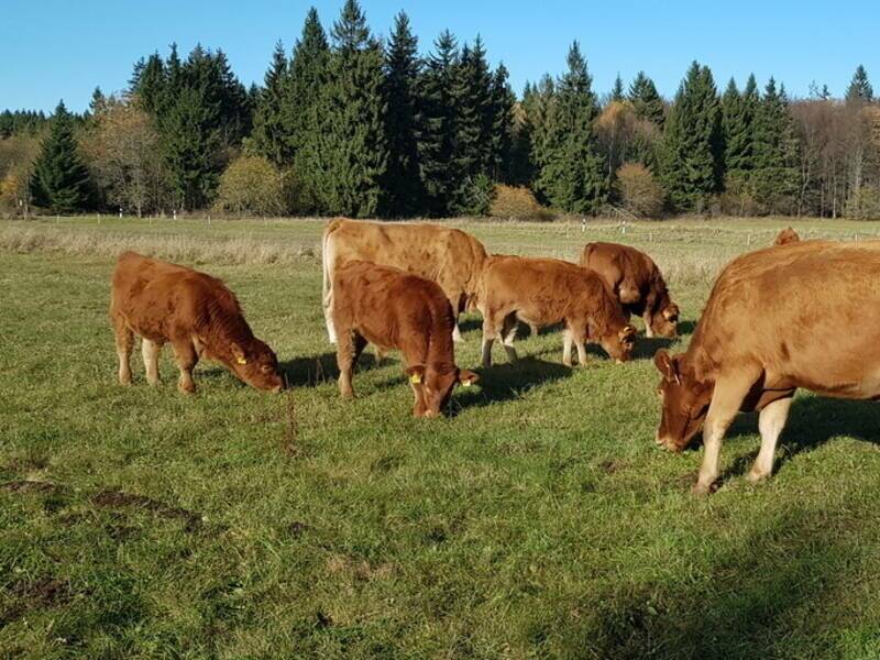 wir sind Steffen und Vanessa Röder und bewirtschaften seit 2015 unseren Biohof nach Naturland Richtlinien. Wir dürfen uns glücklich schätzen dort zu Arbeiten, wo andere Urlaub machen. Am Fuße der Rother Kuppe, in der wunderschönen Rhön gelegen, befindet sich unser Hof samt 2021 neu erbauten Zweiraumstall. In diesem leben 15 Mutterkühe, der Rasse Gelvbieh, samt Nachzucht und Deckbullen in den Wintermonaten und für die Zeit der Abkalbung.