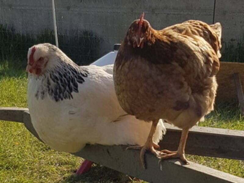 Unsere Bio Hühner dürfen das ganze Jahr, bei Wind und Wetter draußen verbringen. Sie werden durch unsere beiden Schafe, Lilly und Lotti stets vor dem Fuchs und andere Beutegreifer beschützt.